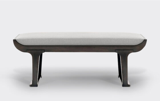 Shown above in semi-matte ebonized oak with seat in standard COM.