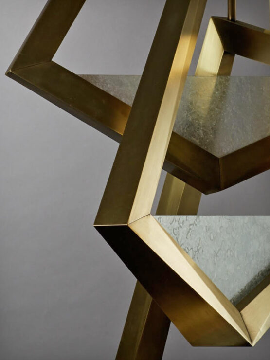 Standard finishes: white pigment with satin brass; white pigment with aged brass. Special finishes: all satin brass; all aged brass.